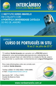 O Instituto Verde Amarelo em conjunto com a PUC do Rio de Janeiro está promovendo curso de portugues para extrangeiros na universidades da Puc do Rio de Janeiro para nivel básico com temáticas turísticas para aperfeicoar o idioma e aproveitar do turismo no Brasil com maior facilidade e posibilidades para interegir com o povo brasileiro, já