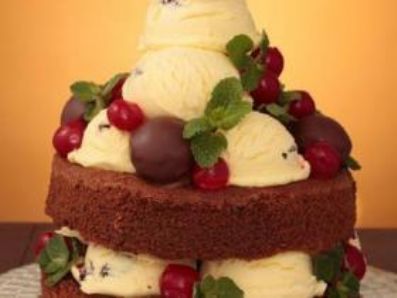 Ingredientes 1 ovo 3 colheres (sopa) de açúcar 4 colheres (sopa) de margarina meia xícara (chá) de leite meia xícara (chá) de chocolate em pó peneirado 1 xícara (chá) de farinha de trigo peneirada 2 colheres (chá) de fermento em pó peneirado 15 bombons 1 pote de sorvete passas ao rum Para decorar: cerejas ao marrasquino calda de chocolate Prato fica pronto em 1h20min e rende 8 porções; Modo de preparo Preaqueça o forno em temperatura média (180°C); Unte e enfarinhe 1 fôrma redonda pequena (20cm de diâmetro); Reserve; Em uma tigela média, coloque o ovo, o açúcar e a margarina; Misture até obter uma; mistura homogênea; Acrescente aos poucos, sem parar de mexer, o leite, o chocolate e a farinha de trigo; Misture delicadamente o fermento e coloque na fôrma reservada; Leve ao forno por 20 minutos ou até que um palito, depois de espetado na massa, saia limpo; Desenforme morno e reserve; Montagem: Corte o bolo ao meio, no sentido do comprimento e reserve; Em um prato para bolo, coloque uma parte do bolo reservado e recheie com bolas do sorvete passas ao rum e bombons; Cubra com a outra parte do bolo e comece a montar a pirâmide, intercalando bolas de sorvete com bombons; Decore com cerejas ao marrasquino e regue com a calda de chocolate; Sirva em seguida; Informações Adicionais Variação: Se preferir, substitua por bombons recheados com cereja. DICA Para dar um visual mais bonito, decore com cerejas verdes e vermelhas, dando a ideia de uma árvore de natal.