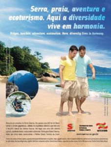 A Santur, órgão oficial do turismo no Estado, vai lançar uma campanha cuja peça publicitária mostra dois homens caminhando pela praia e traz a frase “Aqui a diversidade vive em harmonia”.