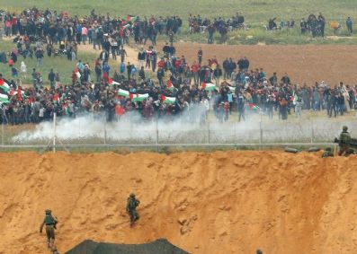 Dezenas de milhares de manifestantes, segundo fontes palestinas, se reuniram em vários pontos da fronteira para "a grande marcha de retorno", um movimento de protesto que deve durar seis semanas para exigir o "direito de retorno" para os refugiados palestinos e denunciar o estrito bloqueio a Gaza.