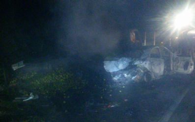 A PRF informou que o motorista de um carro ainda não identificado dirigia no sentido de Goiânia para Brasília quando saiu da pista e entrou em baixo de um caminhão. Com a batida, os veículos começaram a pegar fogo e o caminhoneiro fugiu. Na sequência, outros três carros e um ônibus bateram nos veículos em chamas.
