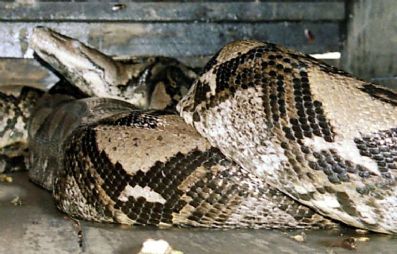 O píton gigante, uma espécie que vive em florestas tropicais, é muito comum na Indonésia e nas Filipinas. Costuma se alimentar de pequenos animais e raramente ataca pessoas.