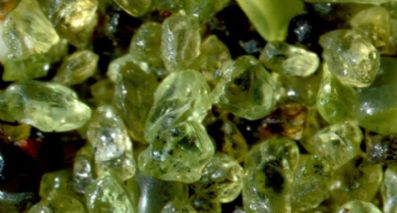 As pedras transparentes, de tom verde oliva, são olivinas — um dos minerais mais comuns e conhecidos. A existência delas não se restringe ao fundo da cratera, ocorrendo também na Lua e até em Marte.