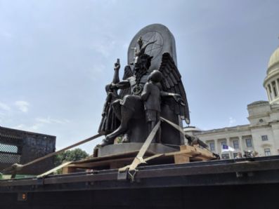 | Instalaram uma estátua satânica em frente à sede do governo do Arkansas |