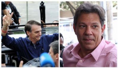 Mais cedo, na primeira pesquisa nacional sobre o segundo turno, divulgada pela consultoria de pesquisa Ideia Big Data em parceria com VEJA, Bolsonaro (PSL) aparece na frente com 54% dos votos válidos contra 46% de Haddad.