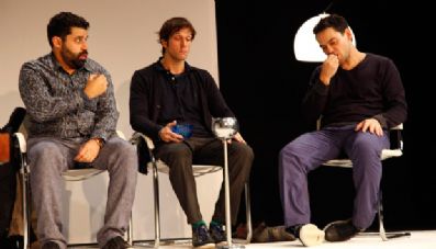 Emilio de Mello já dirigiu duas peças da autora — O Homem Inesperado (2006) e Deus da Carnificina. Agora, além de assinar a tradução, cuidou da encenação precisa. Tudo é muito despojado, da cenografia de Aurora dos Campos à contrarregragem executada pelo elenco. O trio troca os móveis do cenário, reveza-se no comando dos efeitos sonoros e toca instrumentos musicais. Outra boa ideia foi dar voz ao pensamento de cada um: nesses momentos, a iluminação de Tomás Ribas focaliza apenas o rosto dos intérpretes. O tom informal reforça a intimidade entre os personagens. Cria, assim, o ambiente apropriado para as ótimas atuações de Marcelo Flores (o autoritário Marcos), Vladimir Brichta (o conciliador Ivan) e Claudio Gabriel (o polêmico Sérgio).
