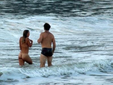 Uma mulher foi flagrada no início da manhã desta segunda-feira se banhando nua na praia do Flamengo, zona sul do Rio de Janeiro. A banhista estava acompanhando de um grupo de amigos. Aparentemente se tratavam de turistas. Ela entrou no mar sem biquini acompanhada por um homem. Ao sair, se enrolou numa canga.