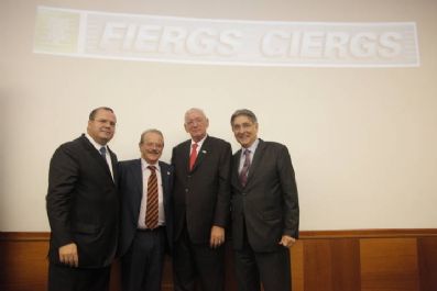Porto Alegre, 30 de outubro de 2012 – O ministro do Desenvolvimento, Indústria e Comércio Exterior, Fernando Pimentel, e o presidente do Banco Central, Alexandre Tombini, se reuniram com industriais gaúchos nesta terça-feira (30), na sede da Federação das Indústrias do Rio Grande do Sul (FIERGS), em Porto Alegre. Na reunião especial de Diretorias FIERGS/CIERGS, liderada pelo presidente da entidade, Heitor José Müller, foram tratadas as perspectivas da economia brasileira. “O Brasil é um exemplo de como se enfrenta uma crise financeira internacional sem sacrificar a sociedade. Temos políticas fiscal e econômica consistentes, permitindo, por exemplo, o controle da inflação e das contas públicas”, afirmou Pimentel. O governador Tarso Genro participou do encontro.