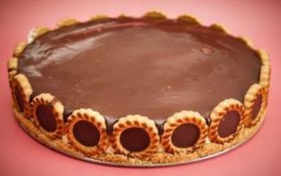 Para a base: Coloque o biscoito em um triturador até que o resultado seja uma farofa. Se preferir, substitua os biscoitos por bolacha Maria. Espalhe a farofa em uma assadeira de fundo removível de 18 cm X 20 cm X 4 cm. Derreta a manteiga e deixe que ela fique em temperatura ambiente e jogue por cima. Com a ajuda de uma colher aperte a mistura até que ela fique bem distribuída. Leve ao forno médio por 6 minutos, tempo necessário para que fique crocante. Depois que a base estiver fria, coloque as bolachinhas de chocolates em toda a lateral da forma. Para facilitar, unte a lateral da forma com manteiga.Despeje o creme sobre a base de biscoito cuidadosamente. Depois leve à geladeira para que o creme fique firme.