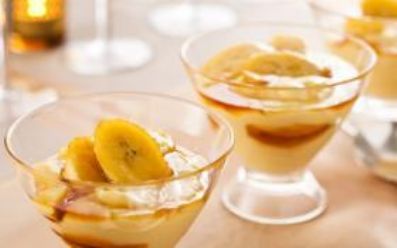Sobremesa: taça de creme com bananas carameladas