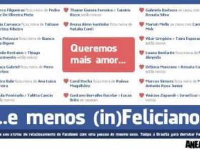 Em ato preparatório para um "beijaço", que será realizado na próxima quarta-feira em Brasília, os membros da Assembleia Nacional dos Estudantes Livre (Anel) pediram aos estudantes nesta semana que alterem seus status de relacionamento no Facebook para pessoas do mesmo sexo. O protesto é direcionado ao presidente da Comissão de Direitos Humanos (CDH) da Câmara dos Deputados, Pastor Marco Feliciano (PSC-SP).
