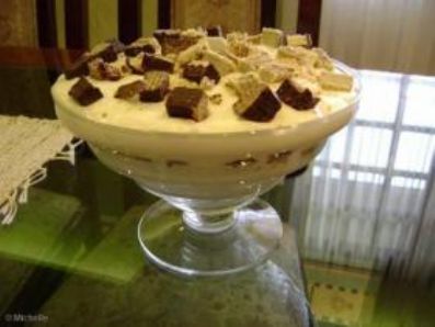 Modo de Preparo Pique os bis separadamente e reserve Bata o restante dos ingredientes no liquidificador, acrescentando o suco de limão aos poucos, até obter o sabor desejado Em um refratário, alterne camadas de creme, bis branco, creme e bis preto até acabarem os ingredientes Enfeite com pedacinhos de Bis