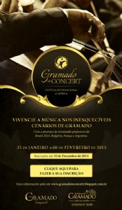Interessados podem se cadastrar até o dia 10 de dezembro para o evento que acontece de 31 de janeiro a oito de fevereiro Uma das cidades brasileiras mais reconhecidas e premiadas pelo potencial turístico, sede do mais importante evento natalino, o Natal Luz, e também do Festival de Cinema de Gramado, agora ganha um festival internacional de música, o Gramado In Concert. Era o que faltava para essa cidade que respira arte e inspira tanta gente. O festival será lançado no dia 31 de janeiro de 2015, mas por hora as inscrições para as oficinas e vivências que integram a programação já podem ser feitas pelo site da prefeitura www.gramado.rs.gov.br, até o dia 10 de dezembro. As atividades e apresentações irão tomar conta da Rua Coberta e de todos os cantos mais charmosos da cidade, proporcionando aos turistas e aos músicos de todo o país uma intensa experiência musical através de apresentações de orquestras, bandas e grupos de câmara. O banner eletrônico do site da prefeitura leva ao blog do evento, onde os interessados podem acessar todas as informações: regulamento, ficha de inscrição, orientações gerais, apresentação dos professores e equipe. Com a visão nata dos empreendedores artísticos daquela região, o 1º Gramado In Concert chega ao Estado num momento muito efervescente, seguindo uma tendência que cresce a cada dia, a exemplo dos festivais de jazz e de música erudita de Pelotas, Canoas e Porto Alegre, todos já consagrados no calendário da cultura. Em Gramado, o festival terá ainda uma finalidade pedagógica, oportunizando a jovens músicos aulas de instrumentos e práticas coletivas que serão conduzidos por renomados músicos brasileiros e estrangeiros que participarão do evento. Entre eles estarão nomes como Adeline Stervinou (França/Brasil), Elvis Matos (Ceará), Paulo Bosisio (Rio de Janeiro), Kalin Ivanov (Bulgária/EUA), Moisés Alves (Brasília). Serão oferecidas 200 vagas para oficinas e prática de orquestra, disponibilizando 80 vagas para bolsistas de Gramado e 120 para interessados de outras cidades. Na programação aberta ao público podem ser aguardados grandes momentos de música erudita, do jazz e da música internacional, com apresentações da Orquestra Sinfônica de Gramado; da Orquestra de Violões de Gramado; da Orquestra Sinfônica do Festival; da Orquestra Experimental do Festival; entre outras que ainda estão sendo confirmadas. Linus Lerner, diretor artístico do evento, adianta que o repertório escolhido por ele para a abertura do festival, no dia 31 de janeiro, e que será executado com a Orquestra Sinfônica do festival, terá três obras. A abertura será um concerto para viola e uma sinfonia, seguida da participação do solista e violista norte-americano Brett Deubner. E a grande obra da noite será a Sinfonia nº5 de Tchaikovsky, composta em 1888. A coordenação geral do evento é de Allan John Lino e a curadoria artística e Leandro Serafim. Inscrições no site da prefeitura www.gramado.rs.gov.br Links: http://gramadoinconcert.blogspot.com.br https://www.youtube.com/watch?v=tlIWSBrnz70 https://www.facebook.com/groups/838309042877874/?fref=ts BD Divulgação