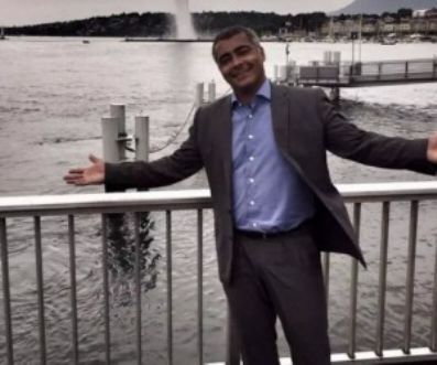 possuía R$ 7,5 milhões em uma conta na Suíça. Em uma foto em Genebra,