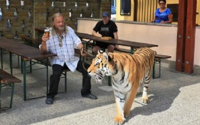 O passeio inusitado ocorreu no último domingo (30). Completando 60 anos de idade, o dono do circo, que também é responsável por treinar os tigres e outros animais ferozes, chegou a tomar uma cerveja com o animal ao seu lado.