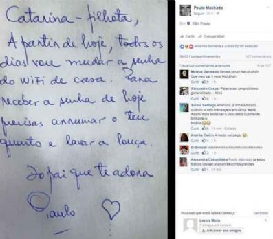 A ideia de um pai ao escrever um bilhete para a filha de 17 anos era apenas que ela tivesse mais comprometimento para realizar as tarefas domésticas. Ele muda a senha da internet wifi todos os dias e, para que ela tenha o o código de volta, era preciso arrumar o quarto e lavar a louça.