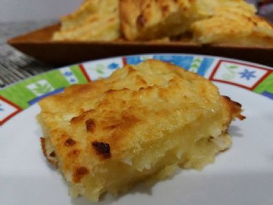 Modo de preparo: Bater no liquidificador o aipim, os ovos e o açúcar até a massa ficar cremosa. Depois coloque em uma tigela o creme, adicionando o coco ralado e mexendo devagar. Coloque a essência de baunilha. Em uma assadeira retangular untada, leve ao forno por 180g/º por 30 minutos.
