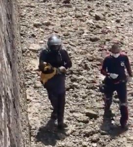 Na hora da queda, o rio estava seco, o que fez com que o bebê caísse em cima de uma parte com lama, o que amorteceu a queda.