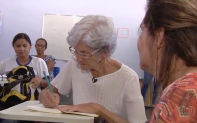 | Aos 80 anos, idosa realiza o sonho de ir para a escola para aprender a ler e escrever, em Goiânia |