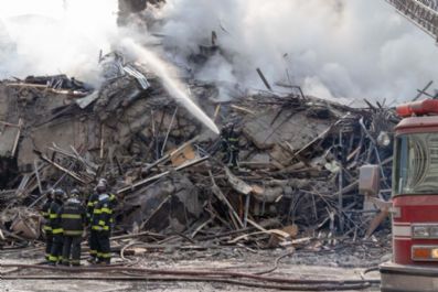 Bombeiros tentavam salvá-lo com uma corda quando tudo veio abaixo. Quando os bombeiros já tinham lançado a corda de salvame