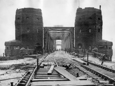 Estas duas torres estão na margem direita do Reno. A Ponte Remagen não existe mais como era, mas os Aliados a cruzaram em março de 1945.