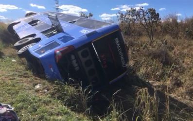 m ônibus tombou no km 5 da BR-040 em Cristalina, no Entorno do Distrito Federal, nesta quarta-feira (27). A Via 040, que administra o trecho da rodovia, informou que seis passageiros ficaram feridos e foram socorridos por ambulâncias da própria companhia e levadas para o Hospital de Cristalina.