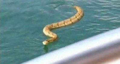 Uma família que fazia um passeio de barco num lago em Knoxville, no estado do Tennesse, Estados Unidos, ficou aterrorizada com a presença de uma cascavel.