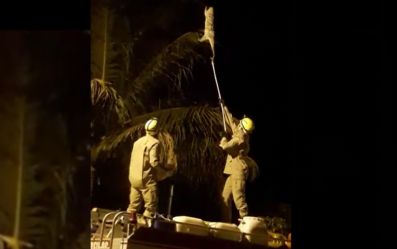 O resgate aconteceu às 20h, após moradores do Setor Jardim Cabral acionarem a corporação. Os bombeiros usaram um caminhão como base de apoio para pegá-lo.
