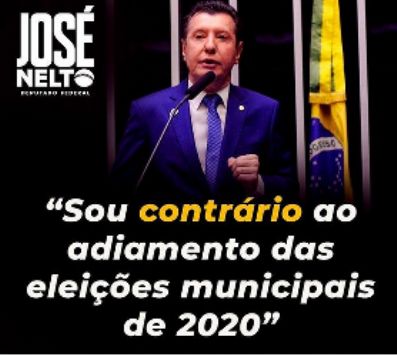 | O Deputado Federal Jose Nelto, se posta contra adiamento das eleições |