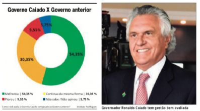 Em pesquisa realizada pela FoxMappin, o Governo de Ronaldo Caiado melhorou sua gestão, quando comparados ao Governo tucano em 54,33 %. As melhoras pontuais, esta no repasse das verbas aos municípios, na transparência e na saúde pública.